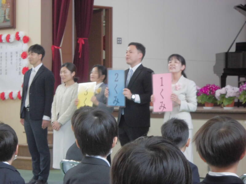 新しいクラスで並び、しっかりとした態度でお話を聞くことができ、1年間のいいスタートの日となりました。新しいクラスの発表、新しい先生方の紹介、担任の先生の発表・・・とどきどきした1日だったと思います。