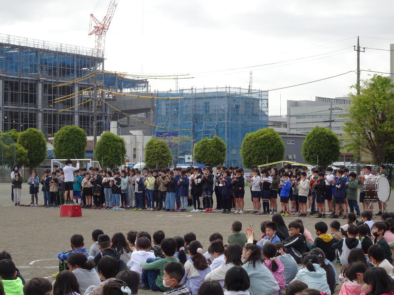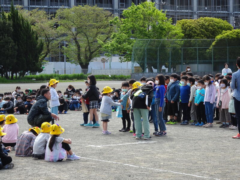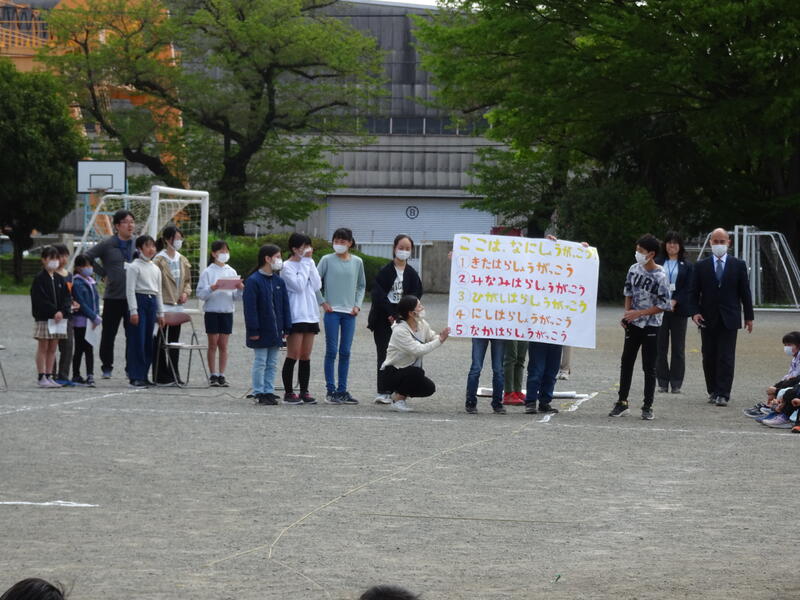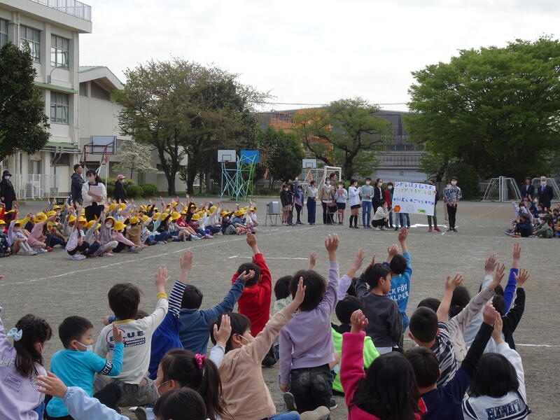 4月13日(木)校庭で「1年生を迎える会」を行いました。