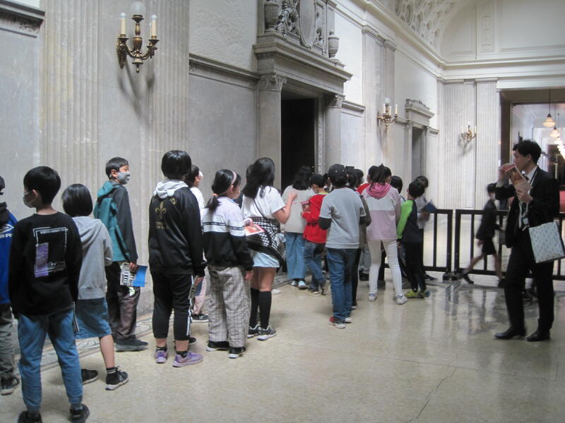 国会議事堂では、見学者が多かったため急ぎ足になりましたが、興味深く見学しました。天井の高さや彫刻にのすばらしさに、「思っていたよりもすごい!」と声をあげていました。
