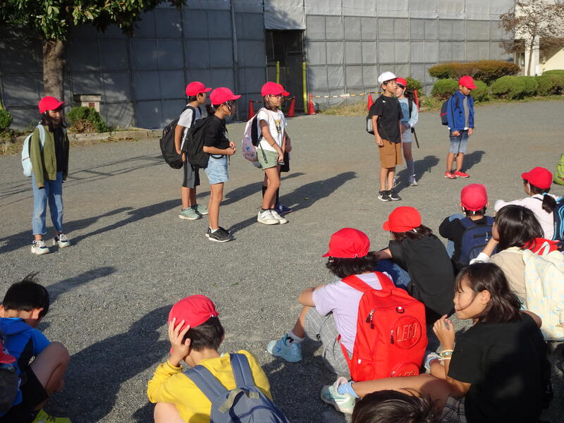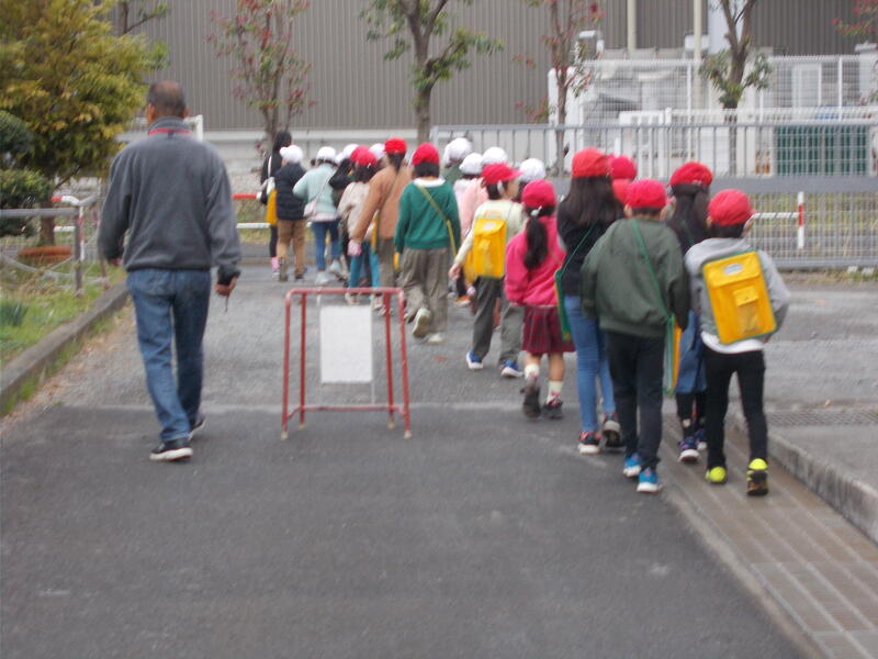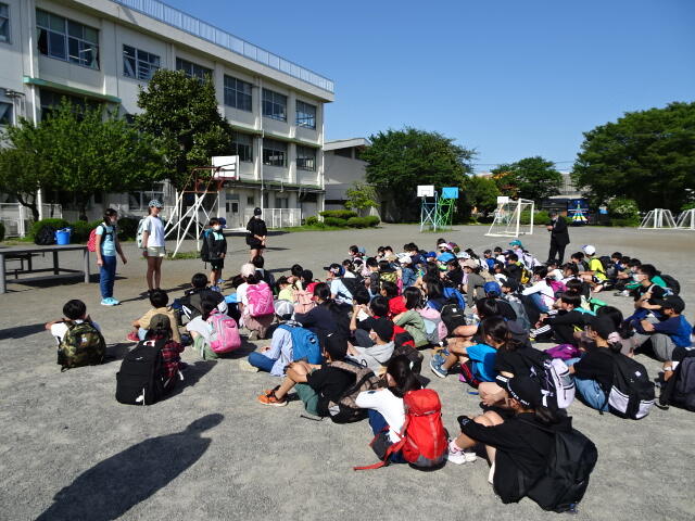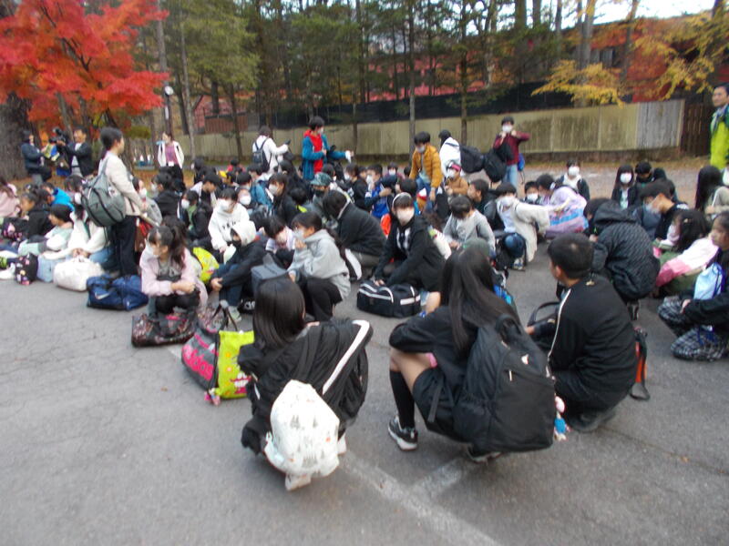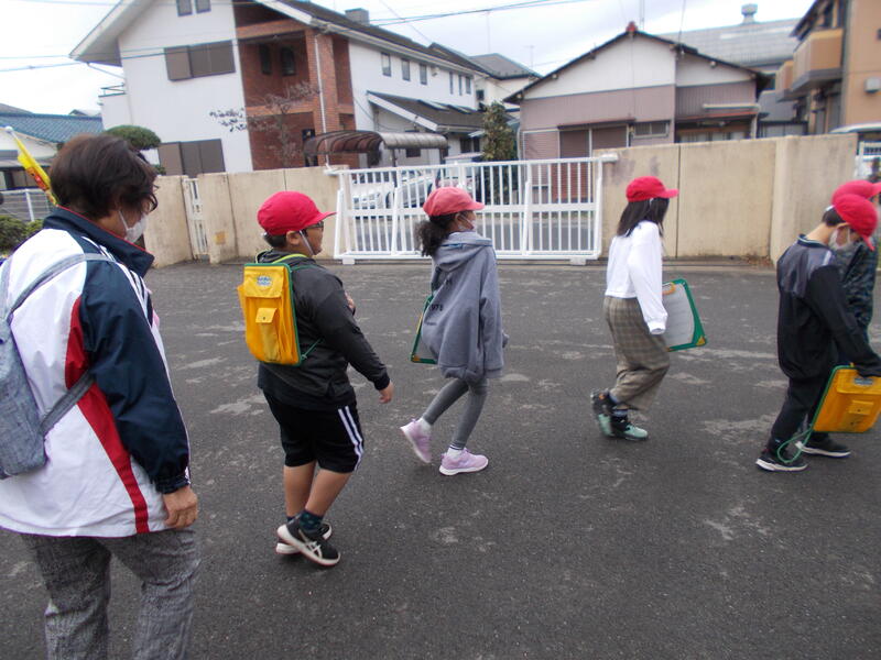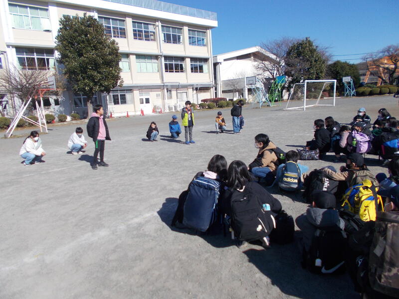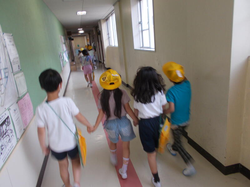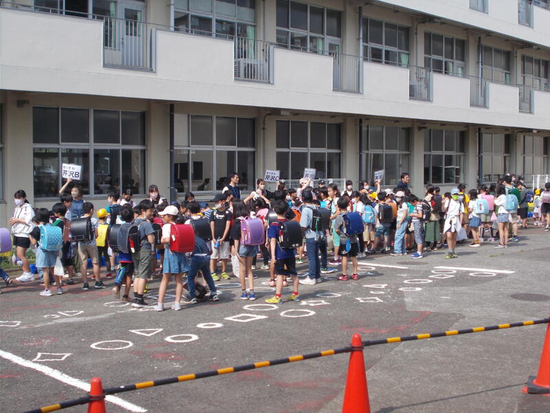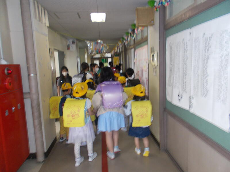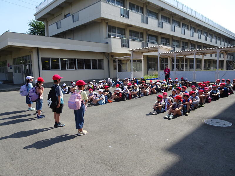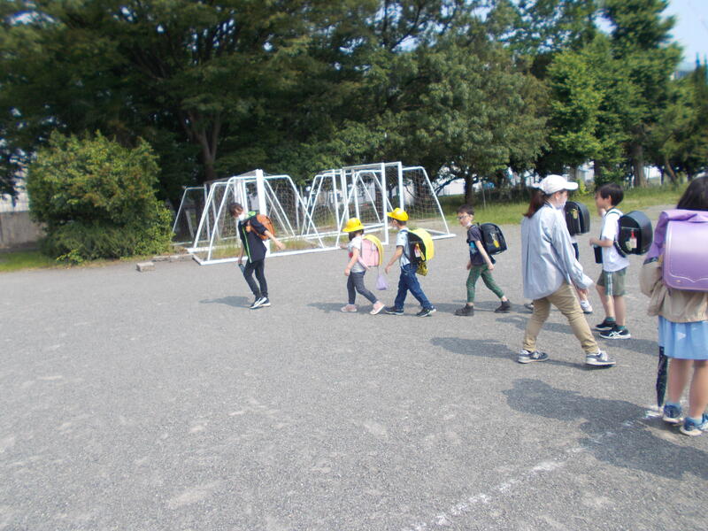 その後、校庭や中庭での集合場所に集まり、班長を先頭に並んで下校しました。