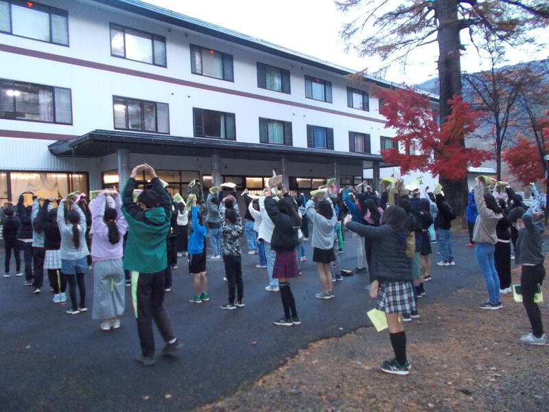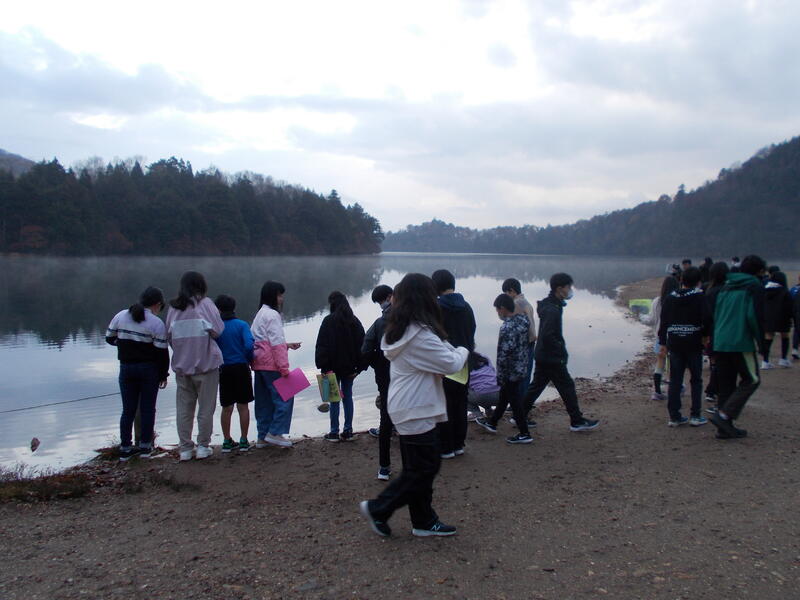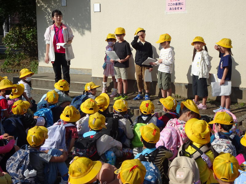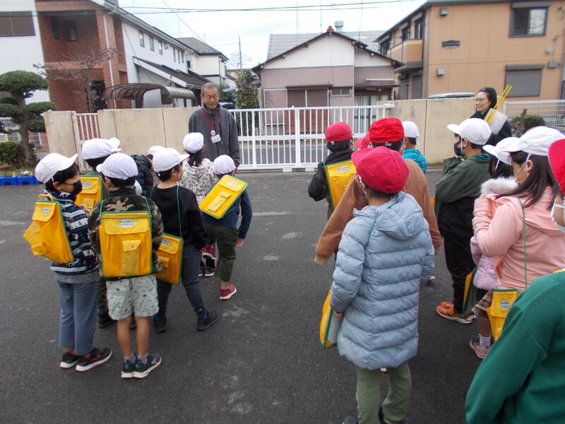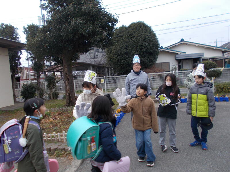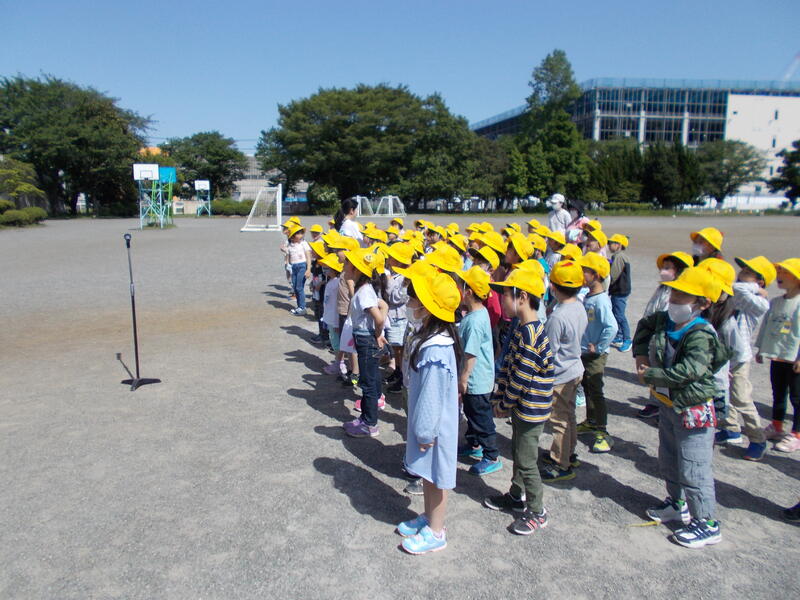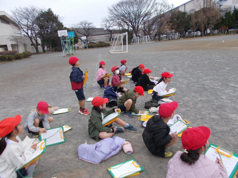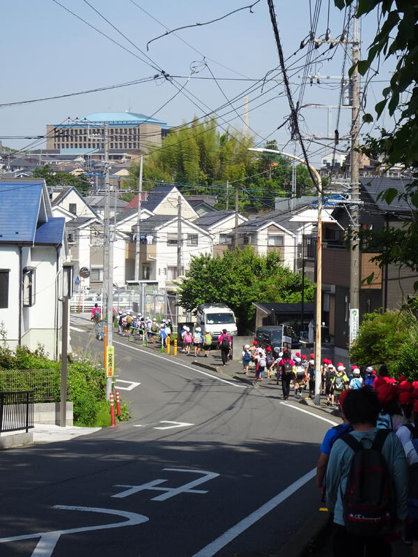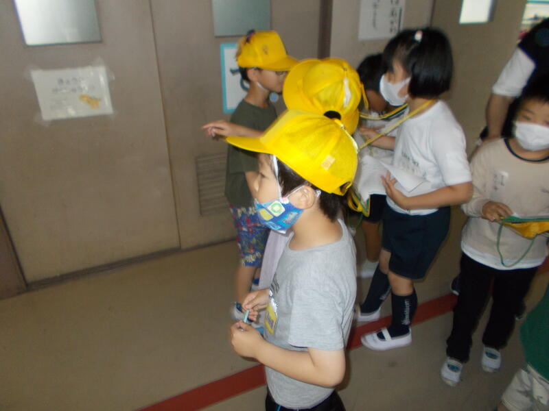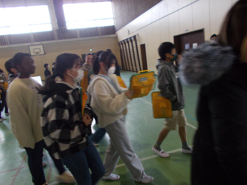 その後、校庭や中庭での集合場所に集まり、班長を先頭に並んで下校しました。