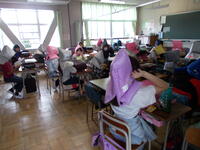 天候不順のため、予定していた校庭ではなく、教室での引き渡しとなりました。保護者の皆様、代理人の皆様、ご協力ありがとうございました。