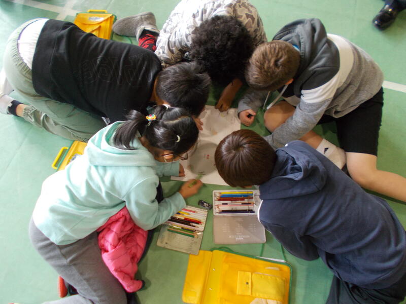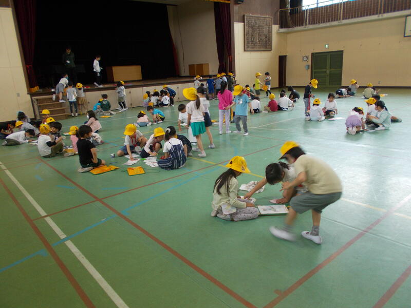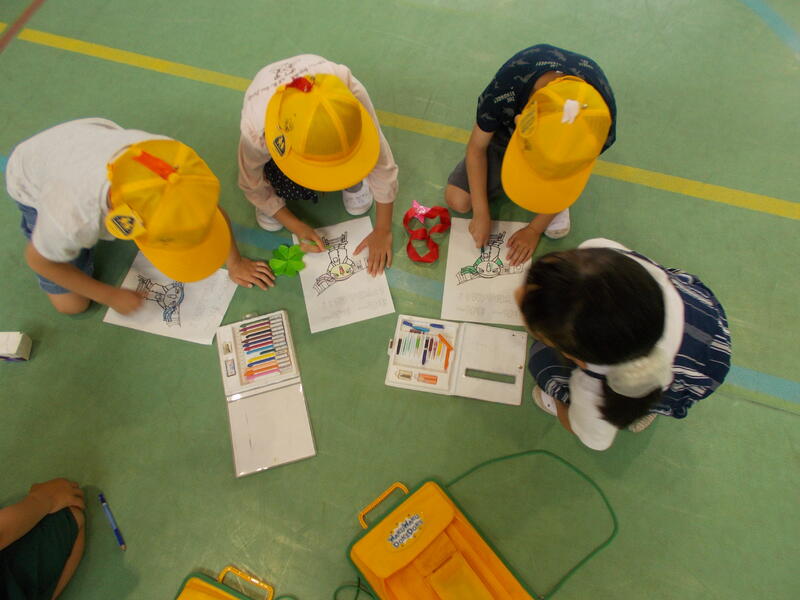 ゴールの後にはぬり絵をする1年生に「めっちゃ上手!」と声をかけたり、そばで見守ったりと、2年生がお兄さんお姉さんらしい姿を見せてくれました。
