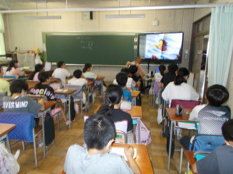 東中学校と南中学校の先生が6年生に、英語、社会、体育の授業をしてくださいました。中学校への期待や楽しみが高まったと思います。授業の中でテストの話題も出てきて、しっかり勉強しなくては大変だと気持ちが引き締まった部分もあったかと思います。中学校の先生方、ありがとうございました。