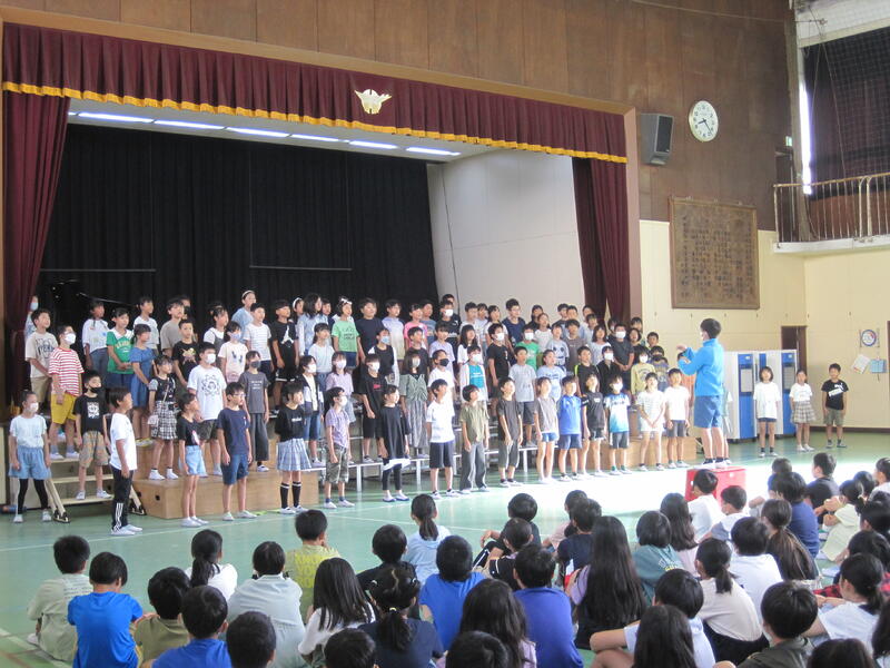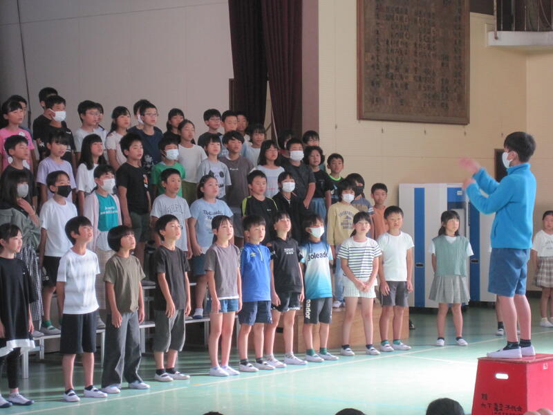 校歌は、6年生の指揮と演奏で、みんなで歌いました。