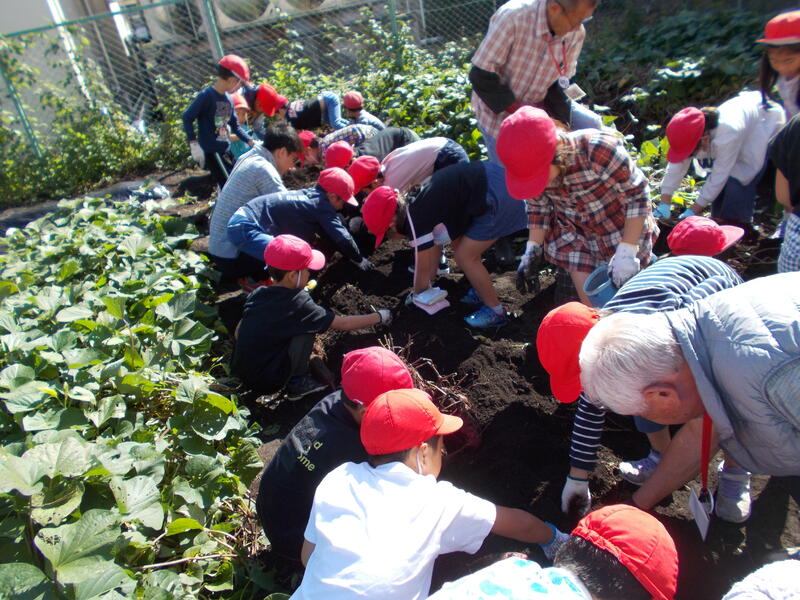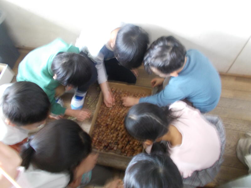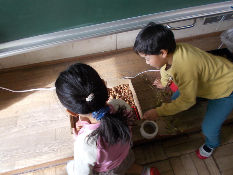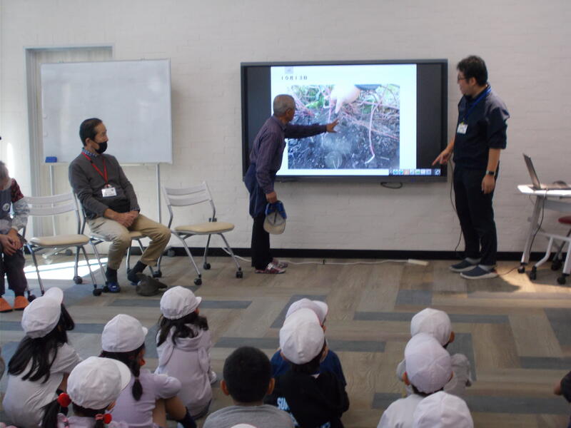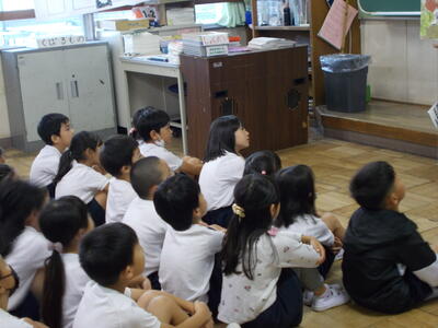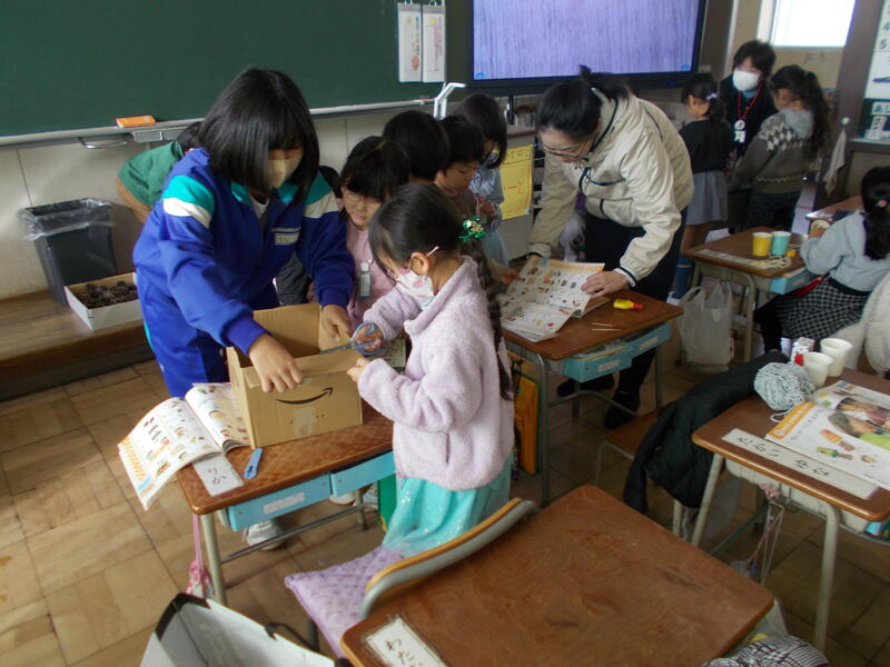 うれしそうな1年生。やさしく世話をする2年生。楽しい雰囲気で協力して学習していました。