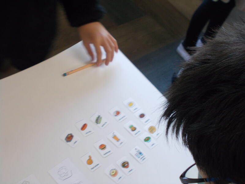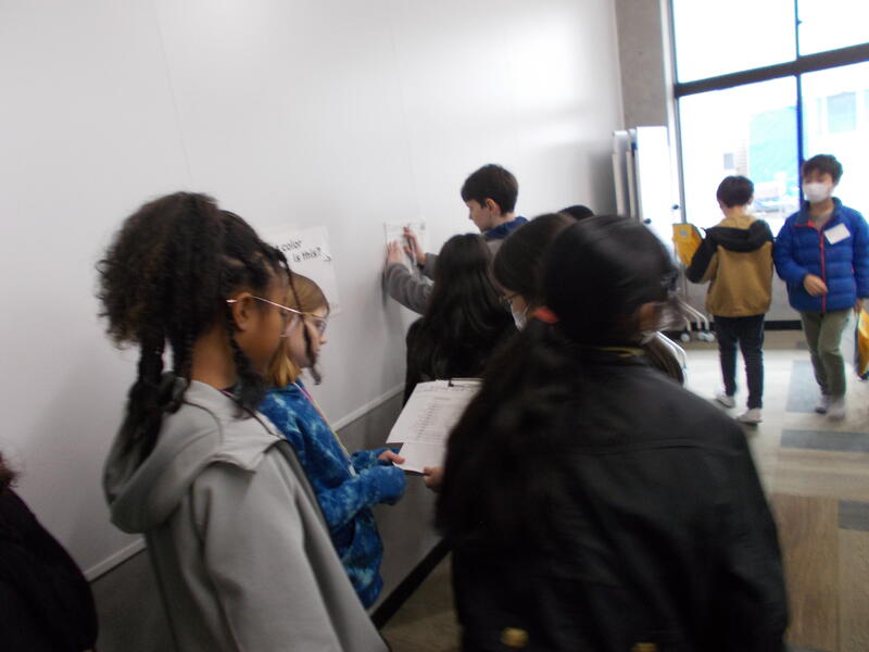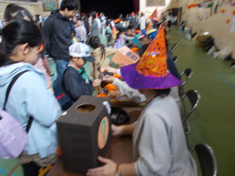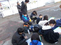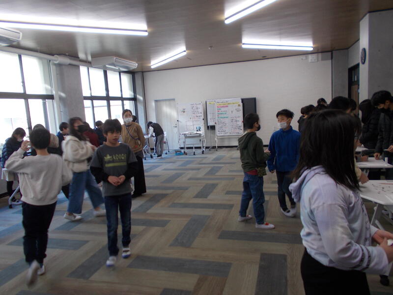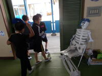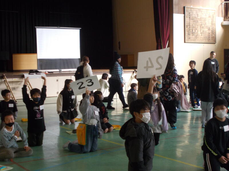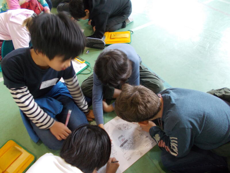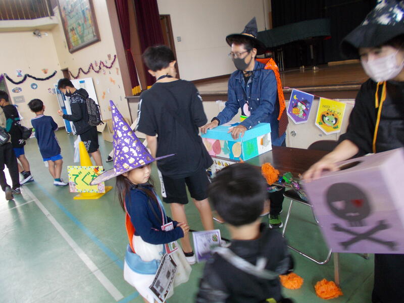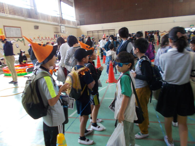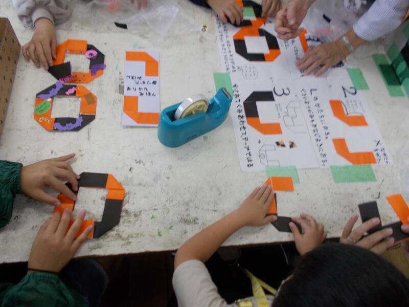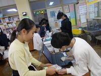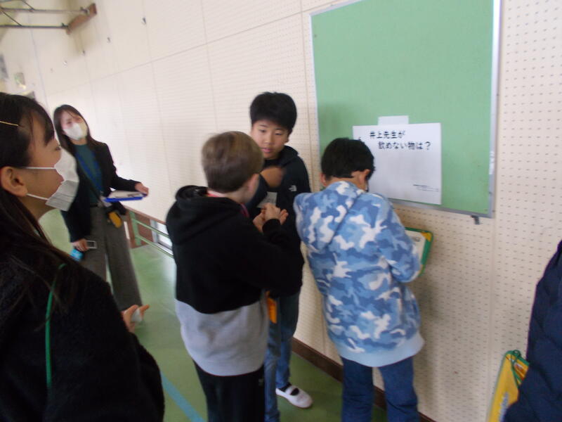1年生と2年生が手をつないで、暗号を解きながら校内を回りました。