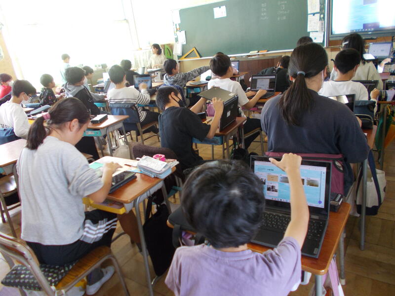 先日は、地域にゴミ拾い活動に取り組んだ6年生。今日は、校内の清掃活動をしてくれました。普段の清掃では手の届かない箇所を自分たちで考え、雑巾を真っ黒にして頑張っていました。クロームブックで、ビフォーアフターの写真撮影もしていました。