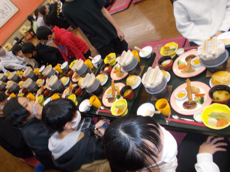 6年生が家庭科の調理実習で、お弁当作りに挑戦しました。一人ひとりの思い思いのお弁当が完成しました。とてもおいしそうでした!!