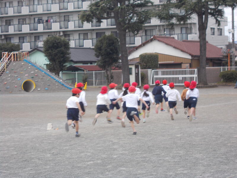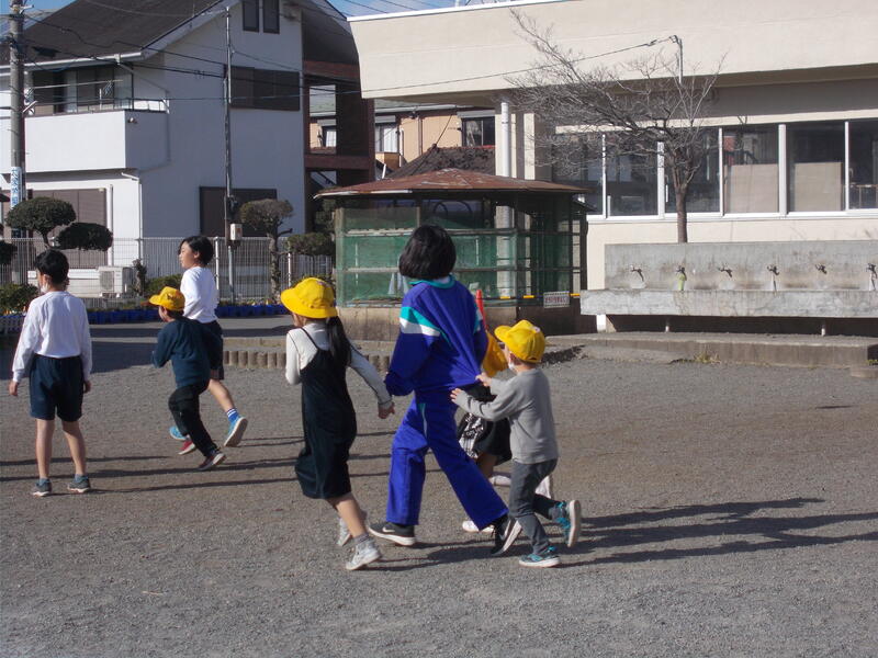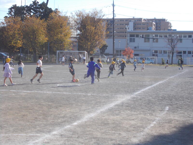 気持ちのいい日。広い校庭でのびのびと遊ぶ子どもたちです。