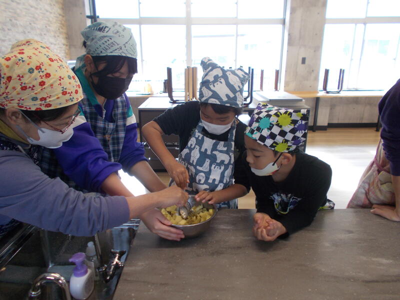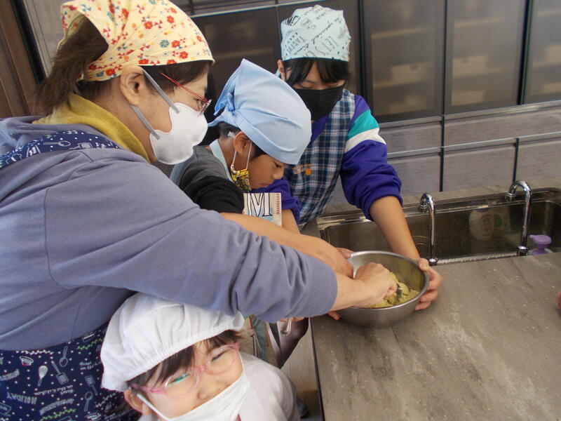 先生の話をよく聞いて、ナンを上手にちぎりながら食べていました。「サラダおいしい!」という声も聞こえてきました。空になったパンの袋を結ぶのは難しそうでしたが、何事も一生懸命挑戦していました。