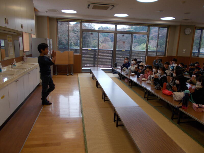 一人ひとりのできるようになったことのスピーチと歌を発表しました。緊張する中、本当によく頑張り、一人ひとりの思いを届けることができました。歌の発表では、教室が温かい雰囲気になり、大きな拍手をもらいました。