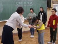 初めに、各クラスの代表者に修了証を渡しました。修了証を渡すと、自然と拍手が起こり、あたたかい素敵な雰囲気でした。