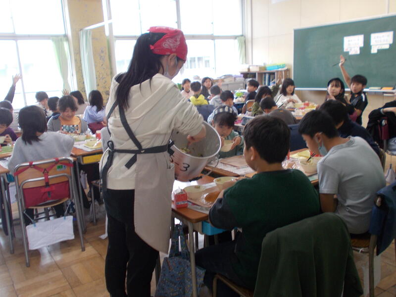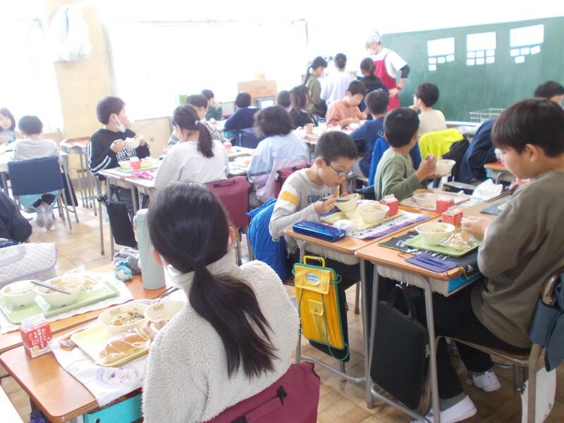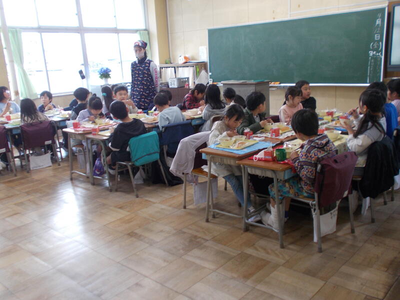 対面となり、なんとなく表情のゆるんでいる子どもたち。楽しく、おいしく、しっかりと食べてほしいです。