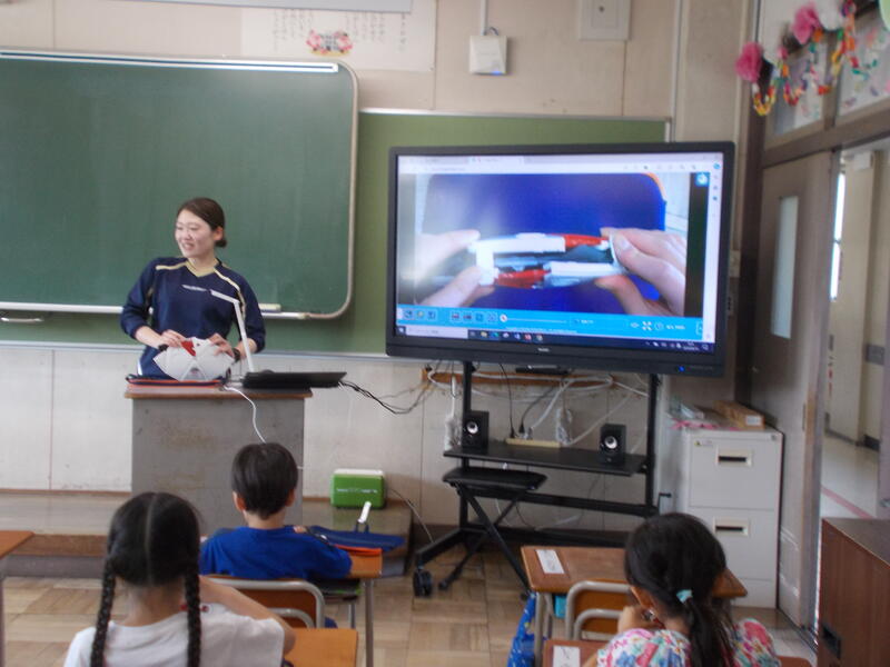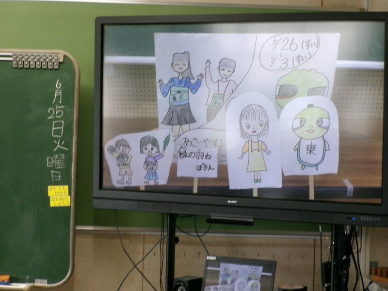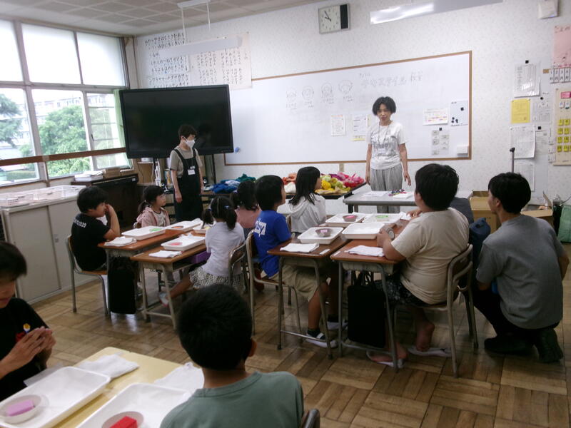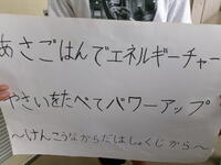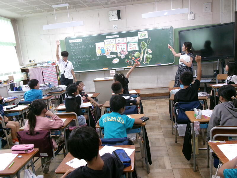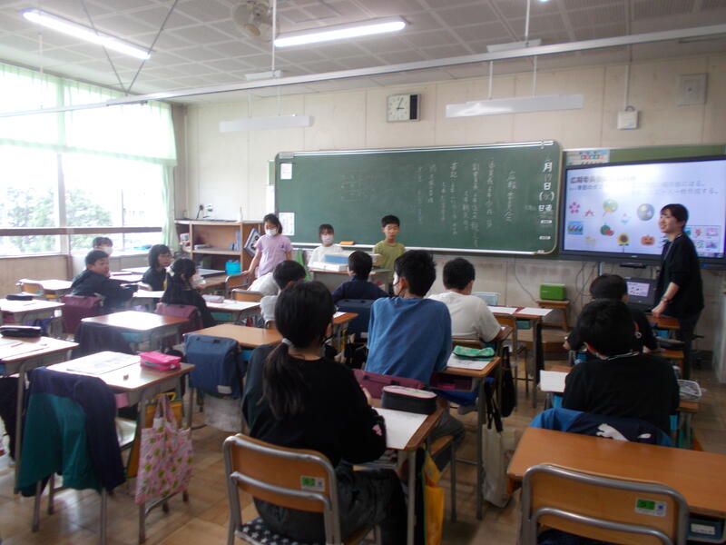 今年度の学校保健会のテーマのもと、朝ごはんや野菜について、みんなに知らせるために、各クラスを回ってお話してくれました。