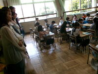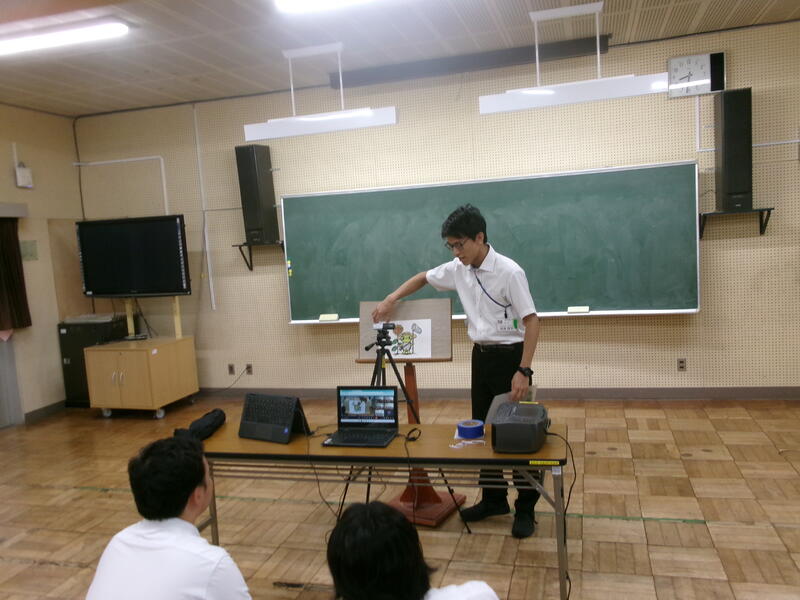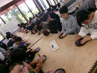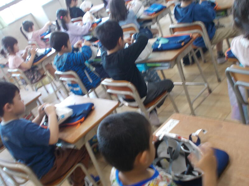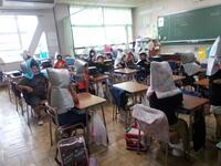 5月20日(月)今回の引き渡し訓練は、朝からの雨のため、教室で行いました。大規模地震発生に関する災害情報が発令されたという想定の訓練で、大事な訓練です。