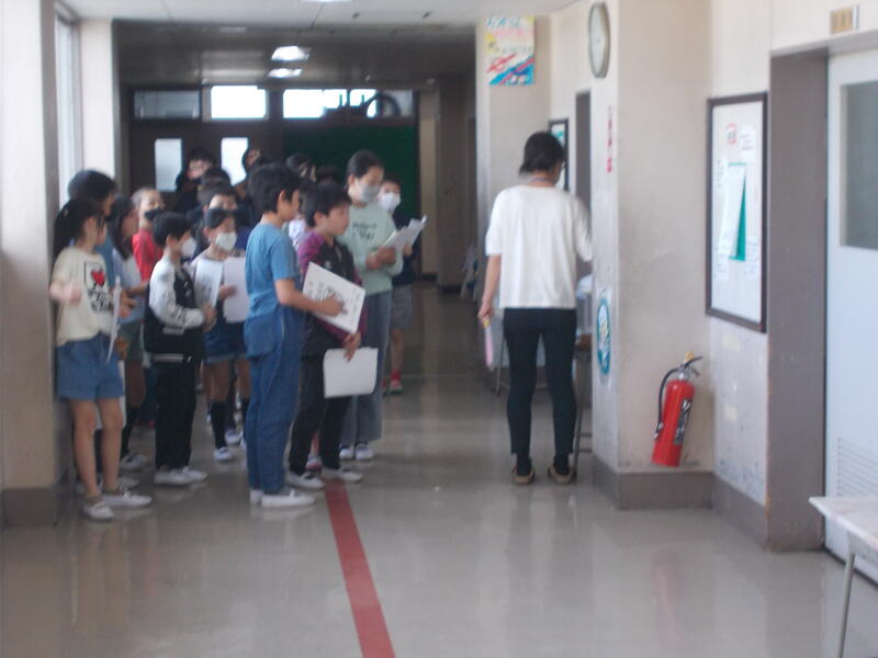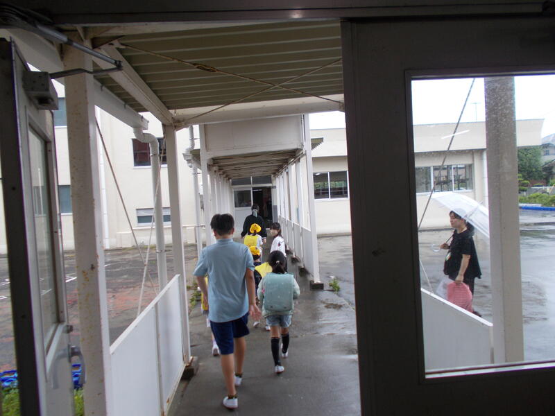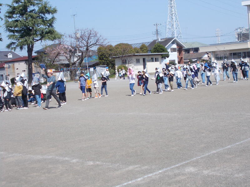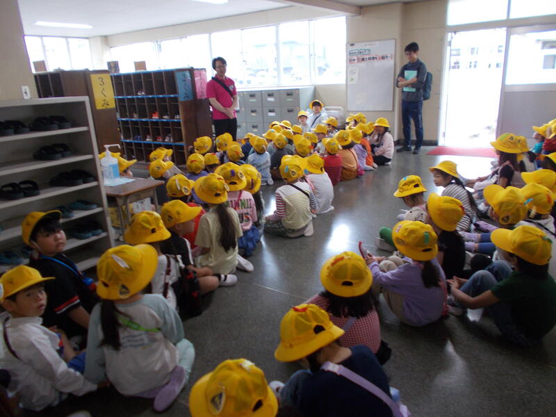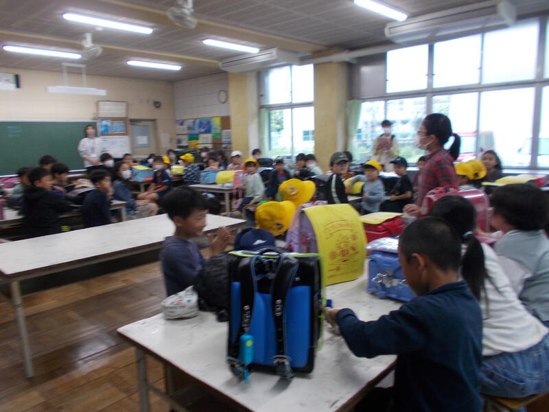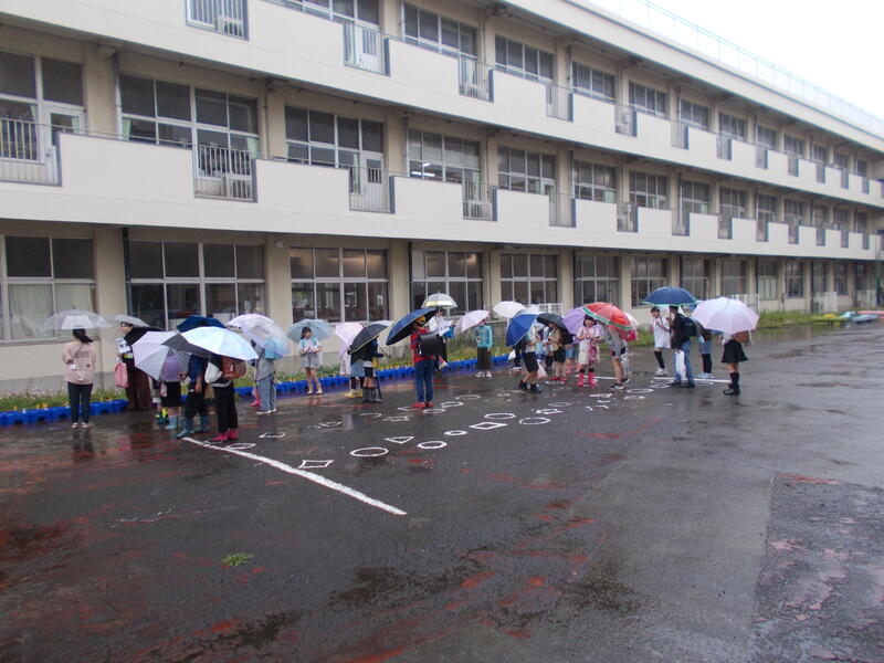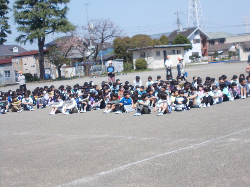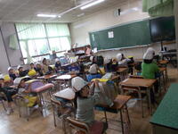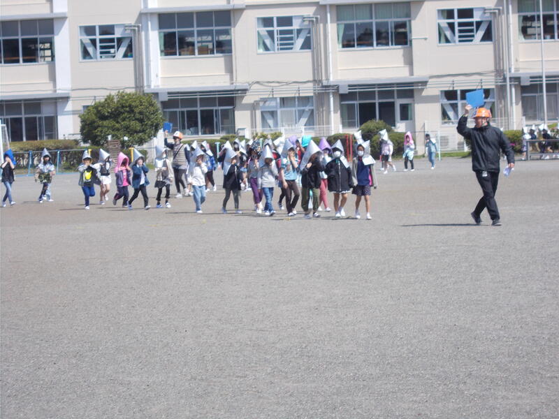 1年生は、ヘルメットをしっかりかぶって避難できました。2から6年生は、しゃべらず落ち着いて避難できました。