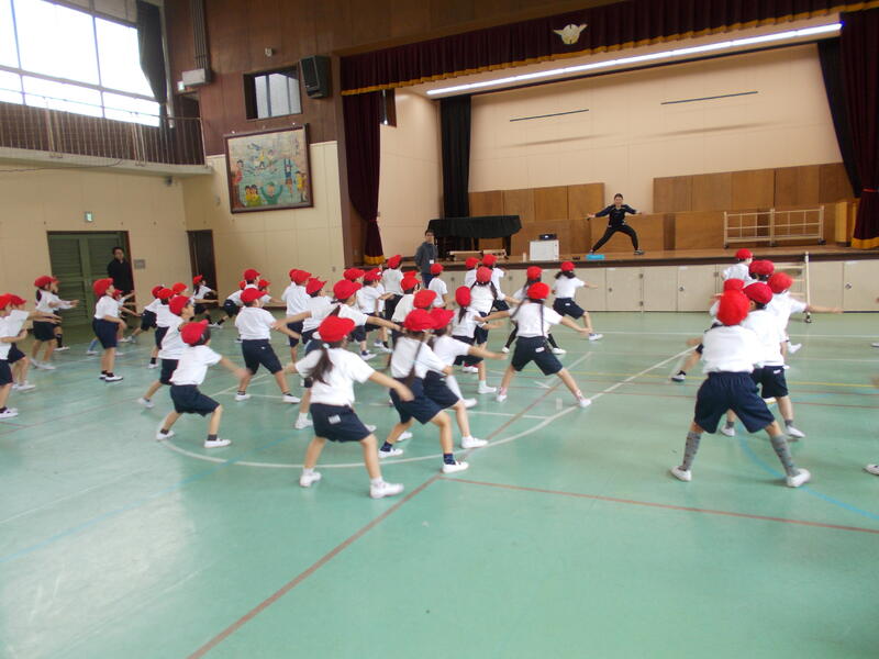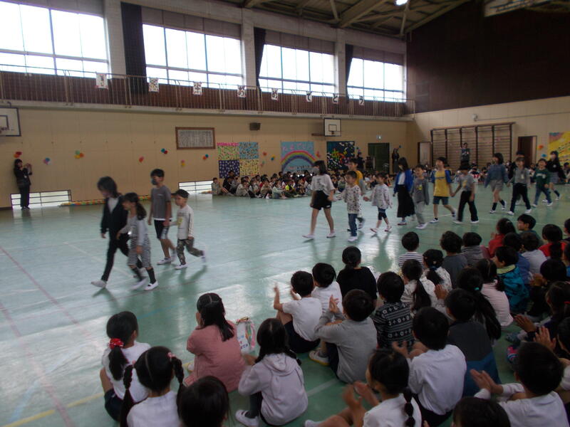 6年生によるお祝いの演奏は、とてもかっこよかったです。リズムに合わせて動きがあり、1年生は笑顔になって、6年生の姿に目が釘付けでした。さすが6年生!!という素晴らしい演奏でした。