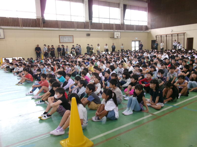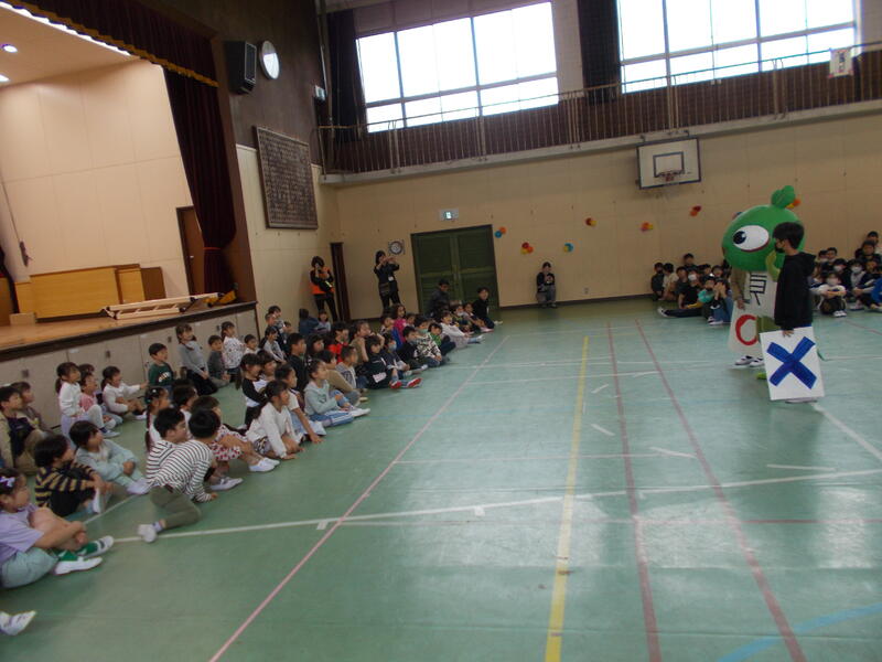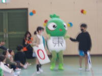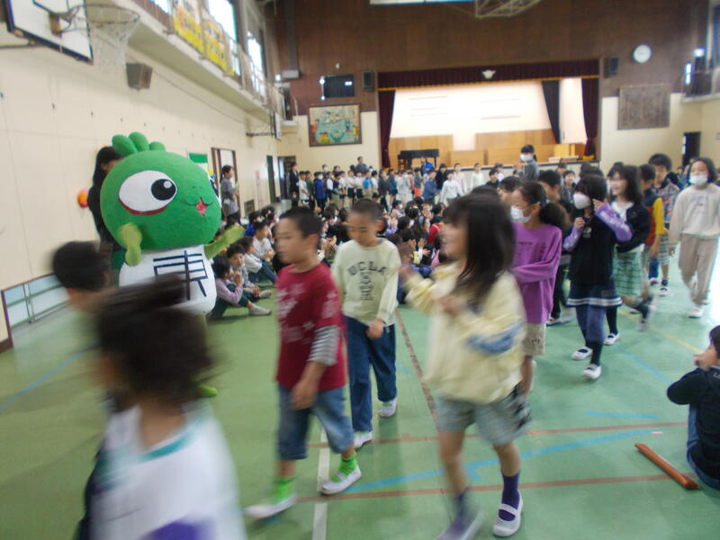 児童会による東原小学校についてのクイズです。東原小のキャラクター「かめっち」についてのクイズもあり、その後、かめっちが登場!!会場は大盛り上がり!!みんな、心がほっこりと温かくなりました。