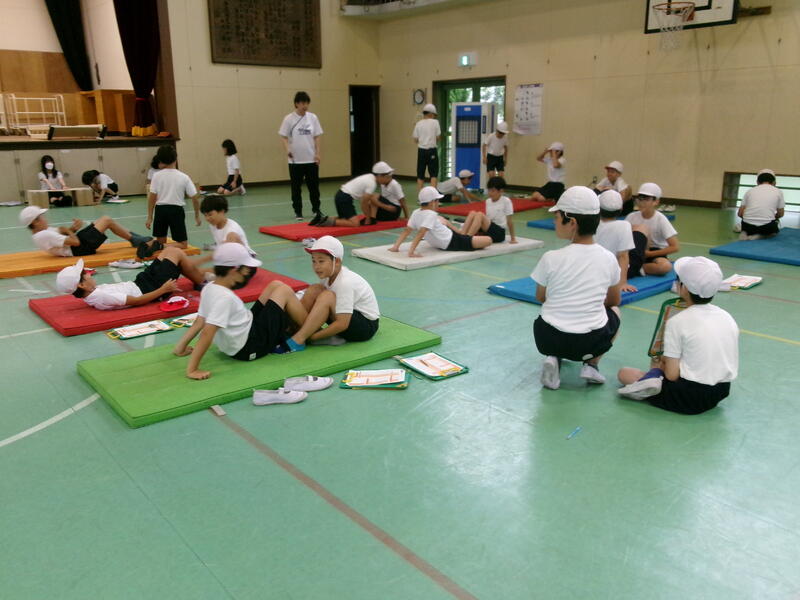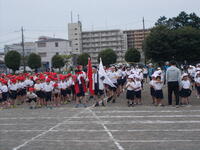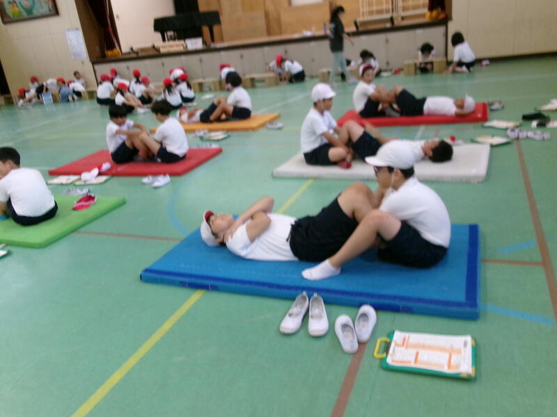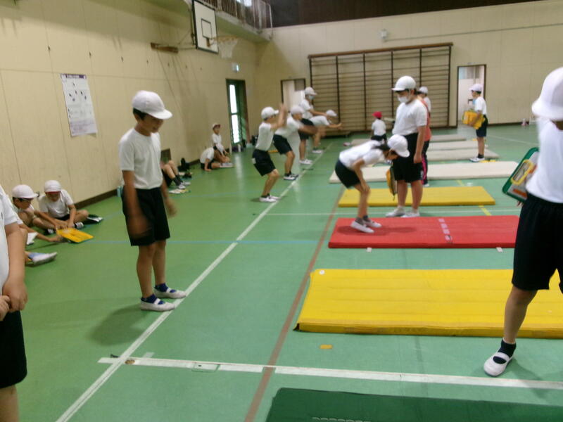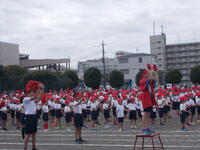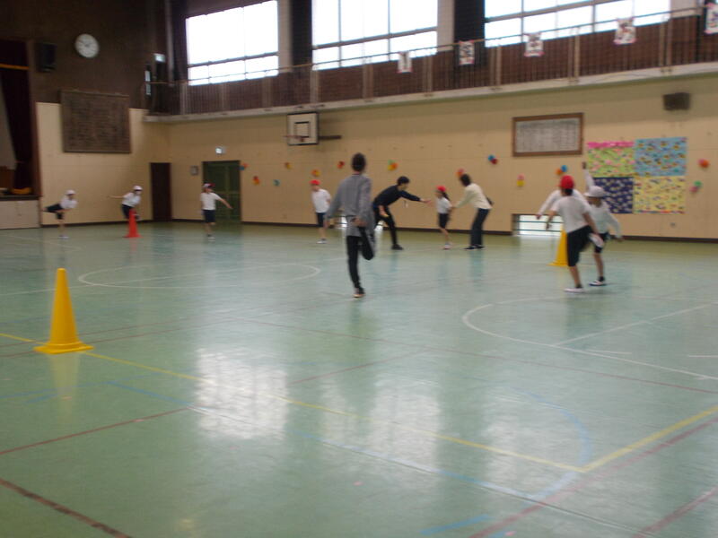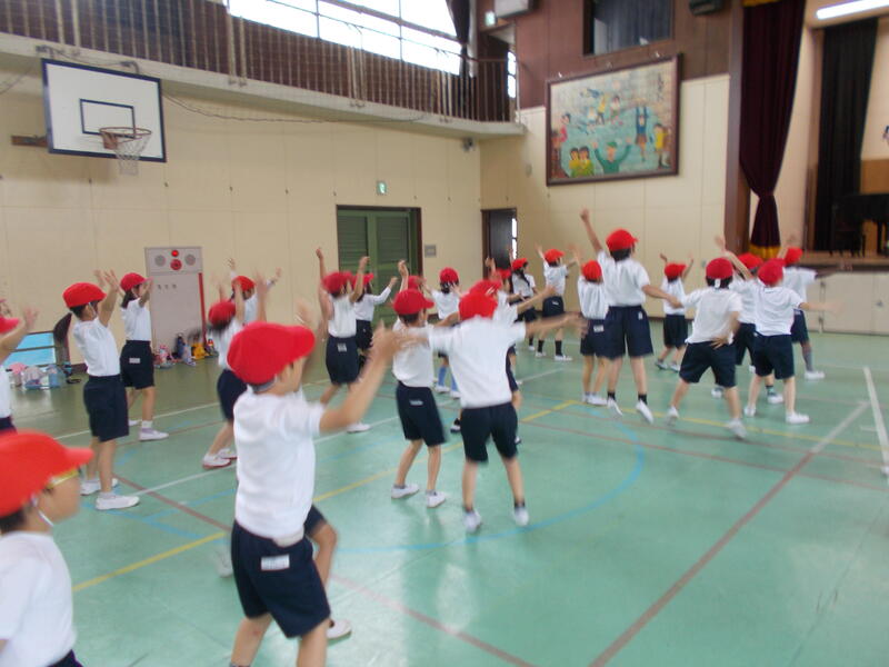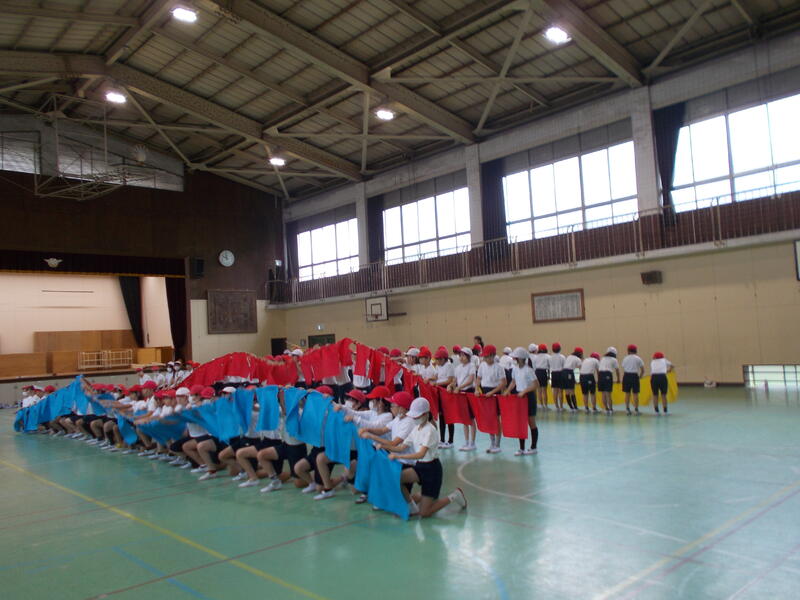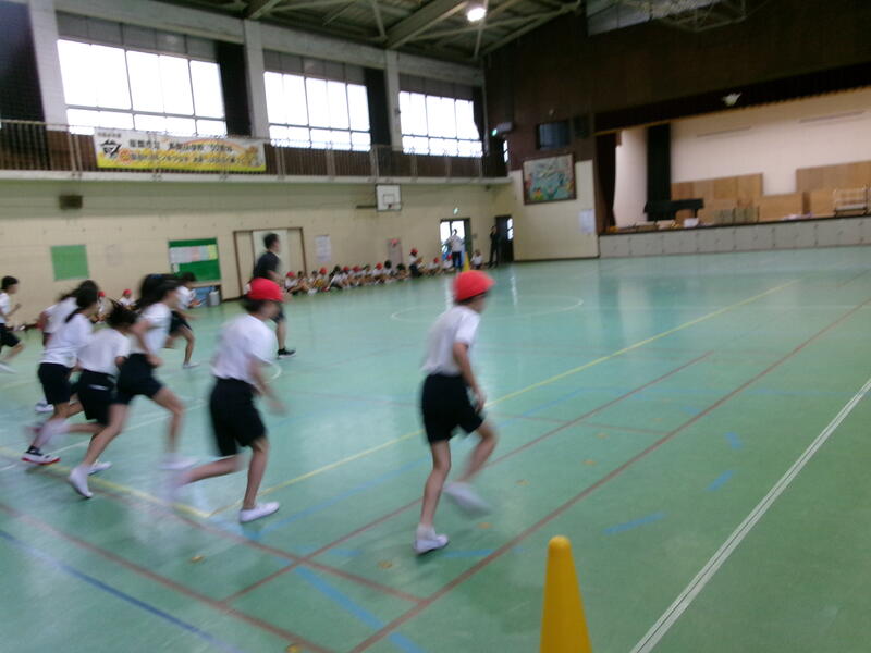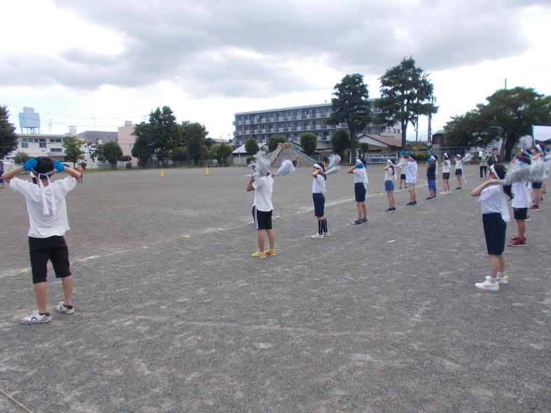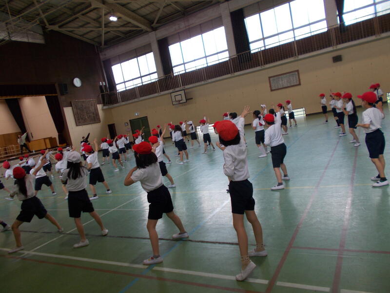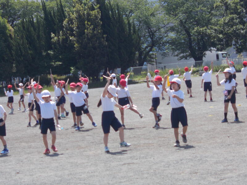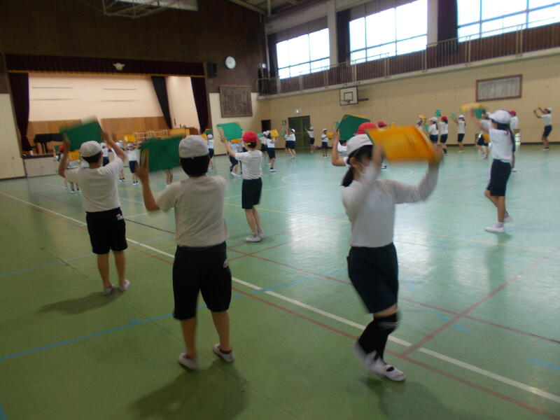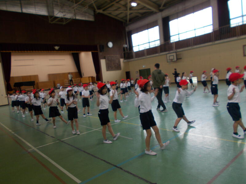 5月23日(木)1・2校時は運動会の開閉会式、ラジオ体操、応援、大玉送り、「タカナカ」(整理体操)の練習をしました。