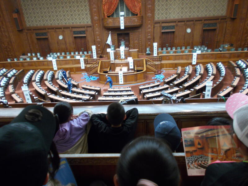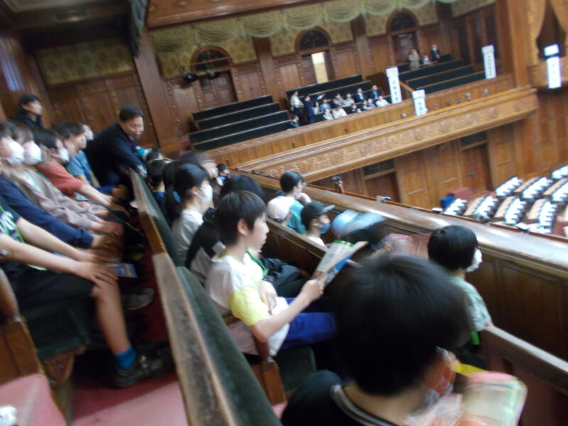 国会議事堂では、議員さんに出迎えていただき、政治についてのお話などを聞きました。将来国会議員になりたい人は?・・・いませんでしたが、テレビでしか見たことのない場所を自分の目で見ることができました。
