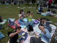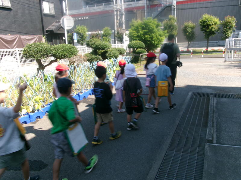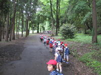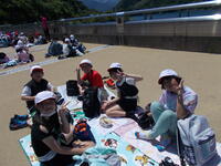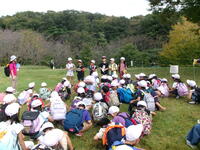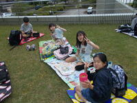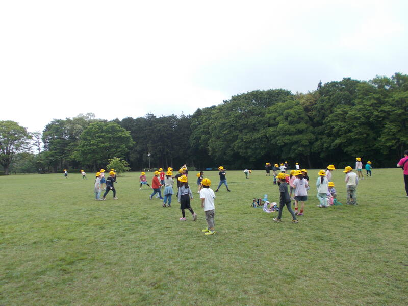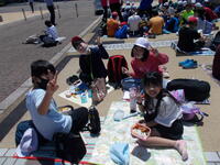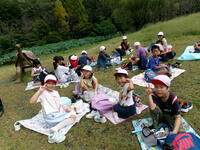 雨が降ったりやんだりで、レインコートを着ての見学でしたが、お弁当の時間には見事に晴れました。ずいぶん前から「おなかがすいたー!」と言っていた子どもたちは、広場でのびのびとお弁当とおやつを楽しみました。保護者の皆さん、ご準備をありがとうございます。