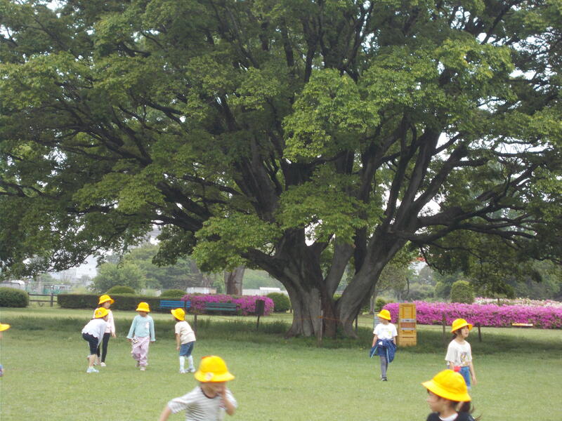 木の下で雨宿りした後は、広い原っぱで思い切り遊びました。