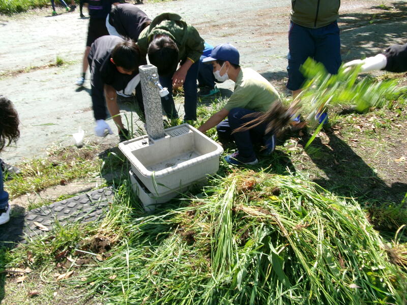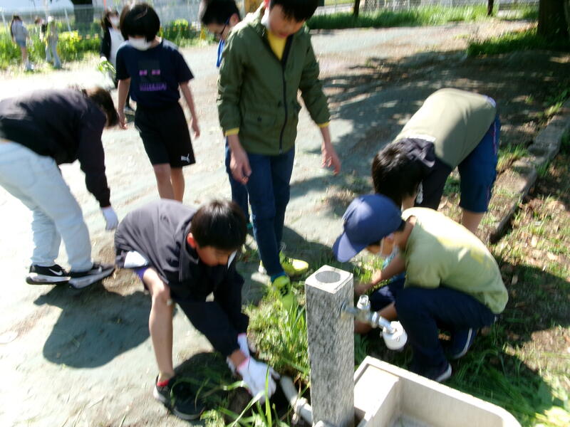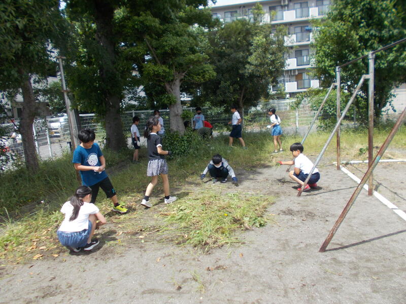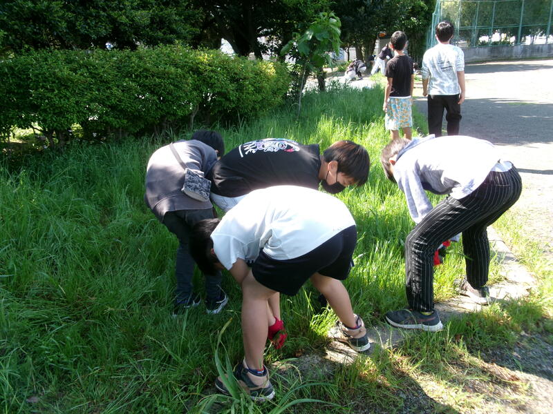今月は、2・4・6年生の草取り月間です。今日は、6年生が一生懸命草取りをしてくれました。「ソーラン節よりきつい!!」との声が聞こえてきました。頑張ってくれました!