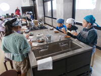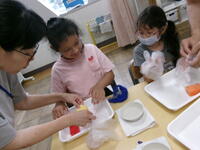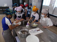 白衣を着たりたたんだり、重い食器などを運んだり・・・一生懸命でした。「パンおいしかった!!」とうれしそうでした。
