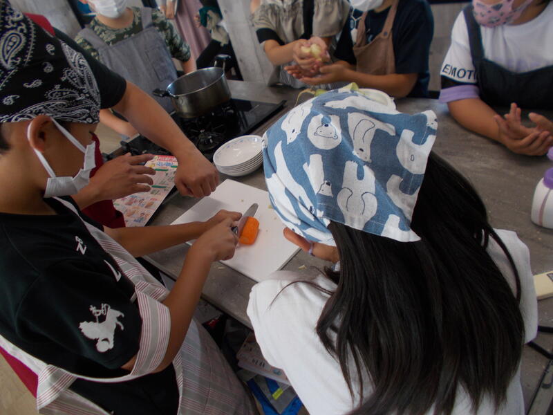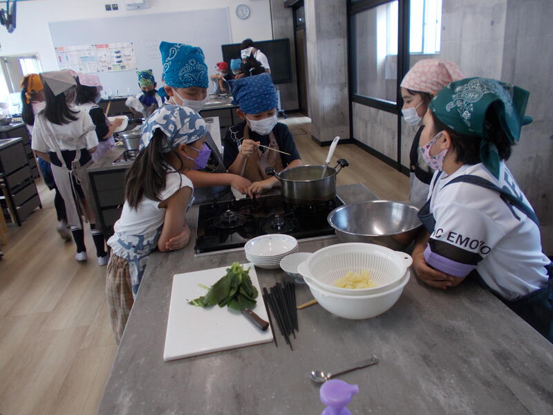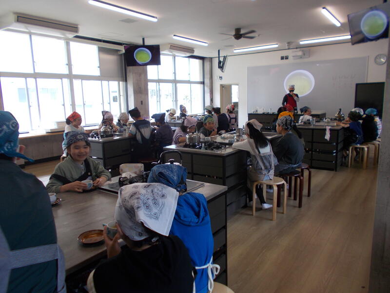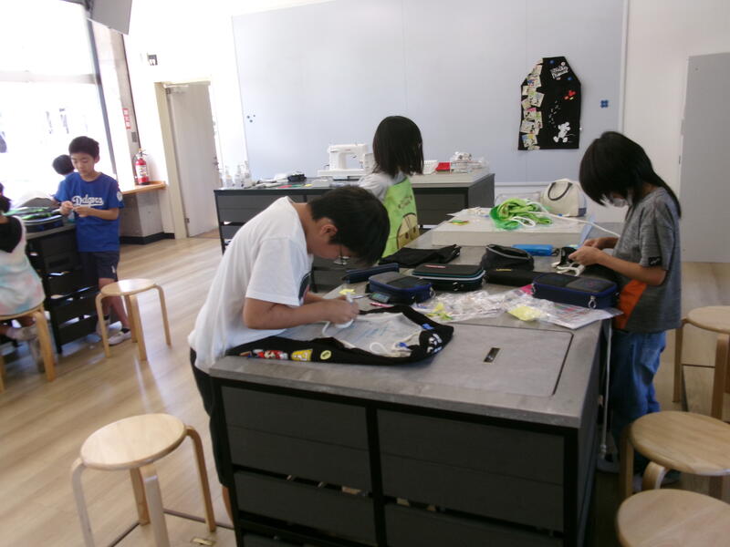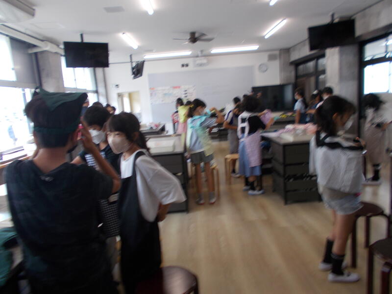 家庭科室をのぞくと、完成したエプロンを着てみたり、最後の仕上げをしたりしていました。コミスク応援隊のみなさんには、ここまで本当にお世話になりました。