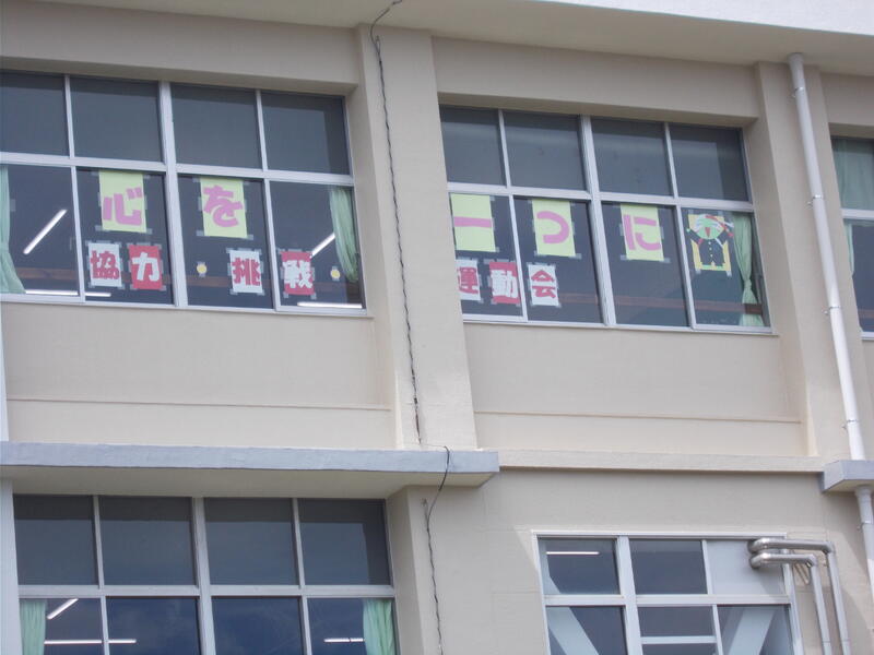 今年の運動会のスローガンは「心を一つに~協力・挑戦・運動会~」です。