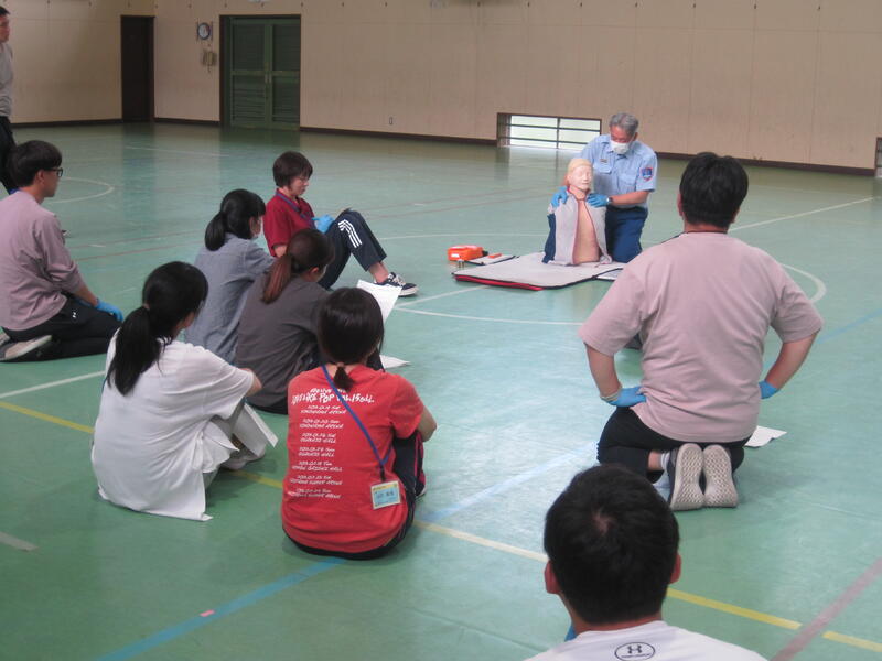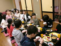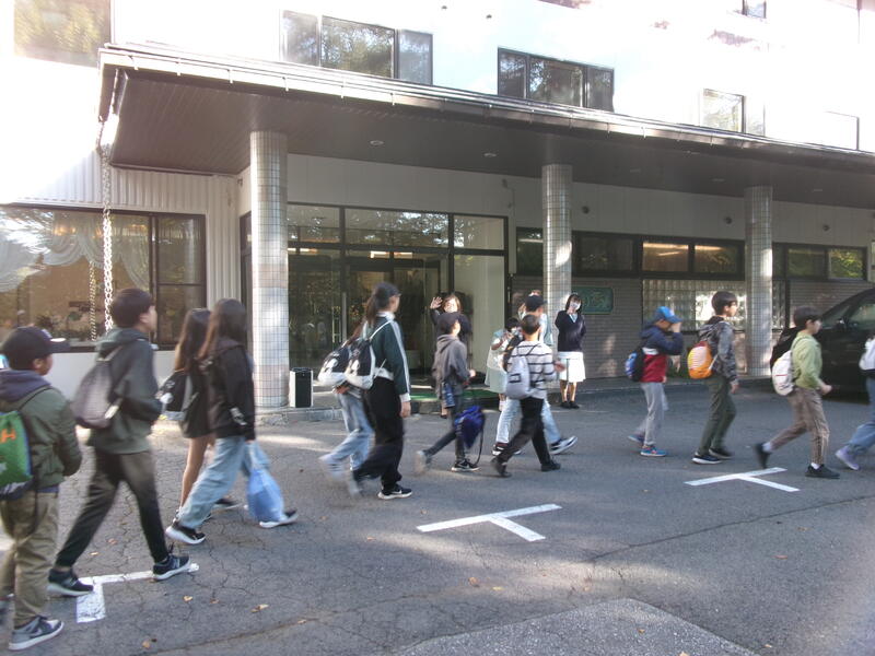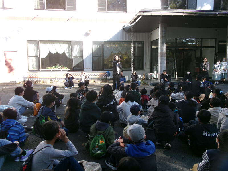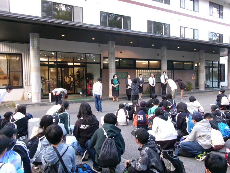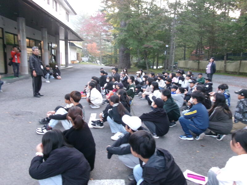 もう薄暗くなっていましたが、お迎えに来てくださった先生方が校舎に明かりをつけて待っていてくれました。バスから明かりのついた校舎が見えると、「うわーっ!」と歓声が上がりました。先生方の気持ちがとてもうれしかったですね!