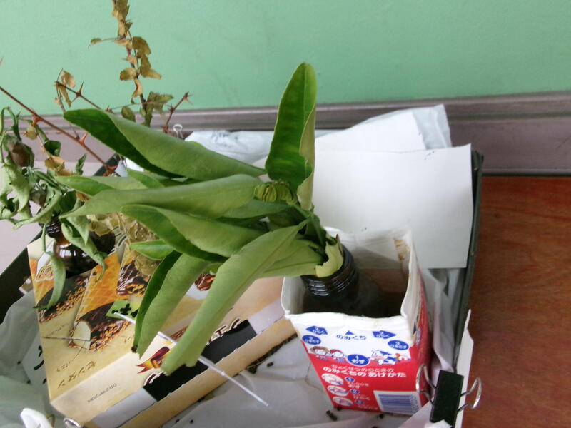 3年生 太鼓代わりのペットボトルをたたく音が響いていました。