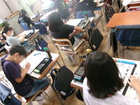 放送委員会。自分たちで放送機器使い方を確認していました。