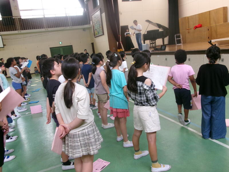 4年生は来週に迫る連合音楽会に向けて、並び方の練習をしていました。そして、先生からマナー等についての大事な話がありました。