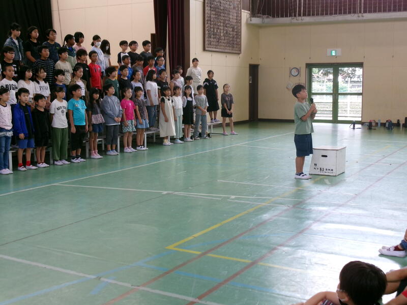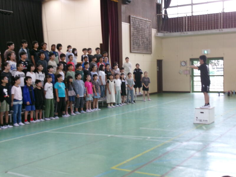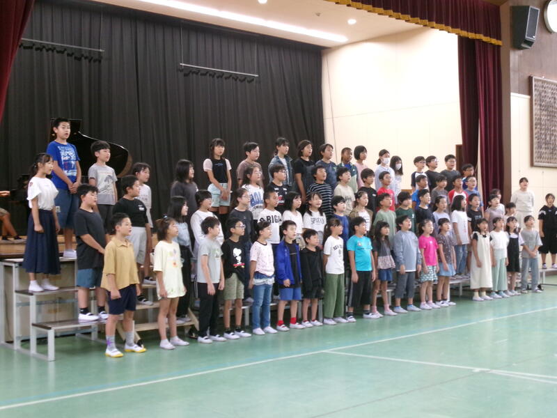 明日はいよいよ4年生の連合音楽会です。              前日の全校朝会では、全校児童と4年生の保護者のみなさんの前で、合唱「小さな勇気」を発表してくれました。とてもきれいな歌声が心に響いてきました。態度もすばらしかったです。