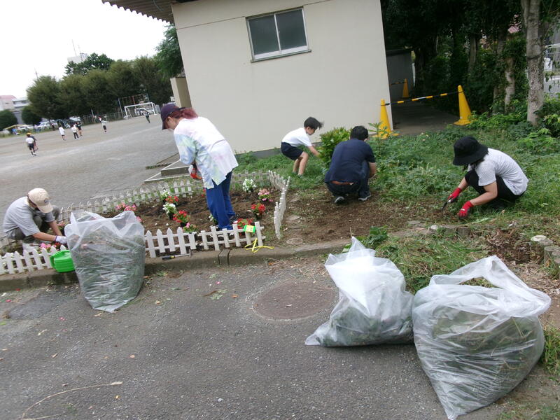PTAひがしはら委員さんの企画で美化作業をしていただきました。花壇は、今までとは違う場所であるかのように、雑草がなく、かわいい花が!花壇だけでなく、生い茂った雑草をきれいに取っていただきました。素敵な環境にしていただき、本当にありがとうございました!!