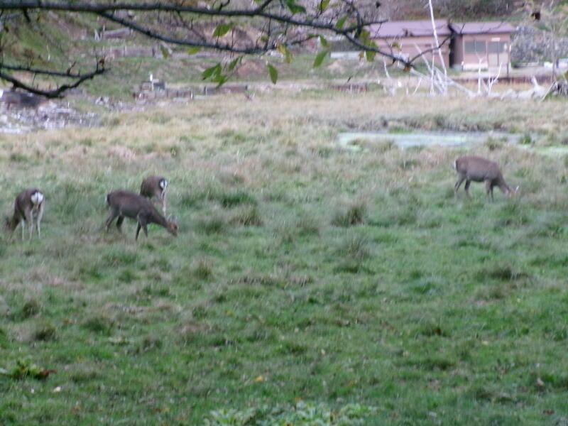 ホテル周辺には鹿の群れがいっぱい。「いた!いた!」「どこ?」と野生の鹿を見つけて喜んでいました。