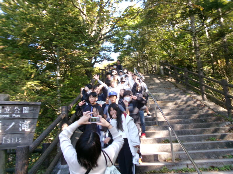 「湯」とつく滝なので、行く前にバスガイドさんから「温かいでしょうか?冷たいでしょうか?」との問いかけがありました。