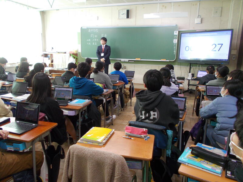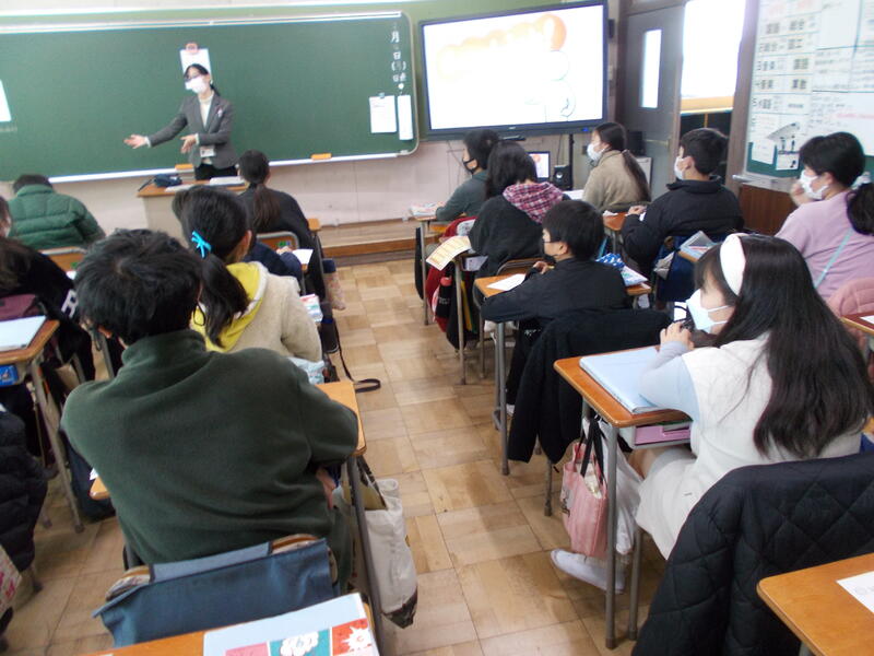 東中学校と南中学校の先生が6年生に、英語、社会、体育の授業をしてくださいました。中学校への期待や楽しみが高まったと思います。授業の中でテストの話題も出てきて、しっかり勉強しなくては大変だと気持ちが引き締まった部分もあったかと思います。中学校の先生方、ありがとうございました。