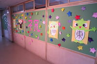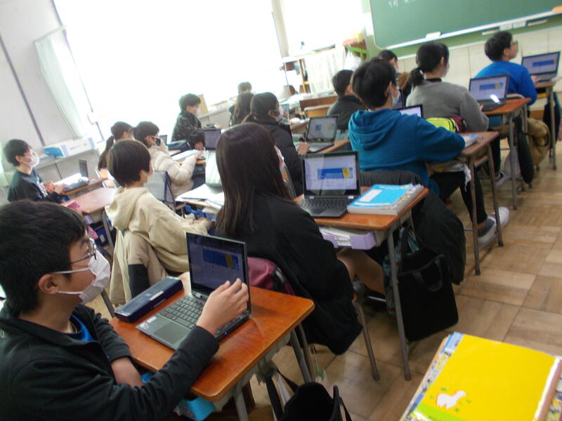 2年生が外部講師による英語教室を行いました。大盛り上がりの声が廊下に聞こえてきました。いろいろな色や果物の言い方をノリノリで発声しました。