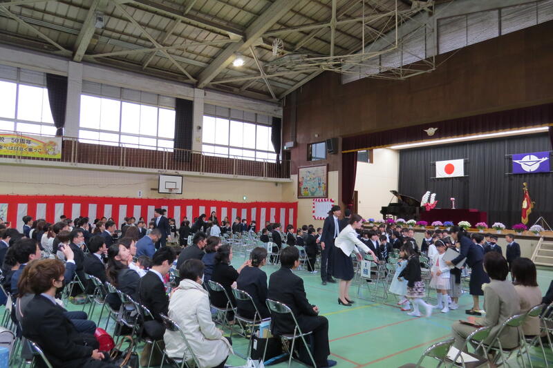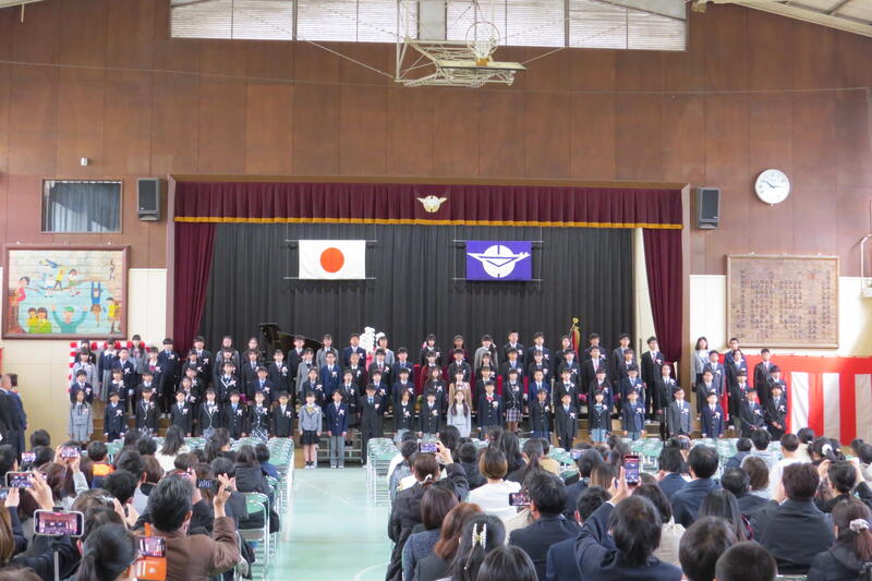 4月9日(火)天候が心配されましたが、予定通りに入学式を行うことができました。かわいい1年生79名を迎えて、とてもうれしく思います。しっかりお話を聞き、よく頑張りました。明日からも楽しみです。