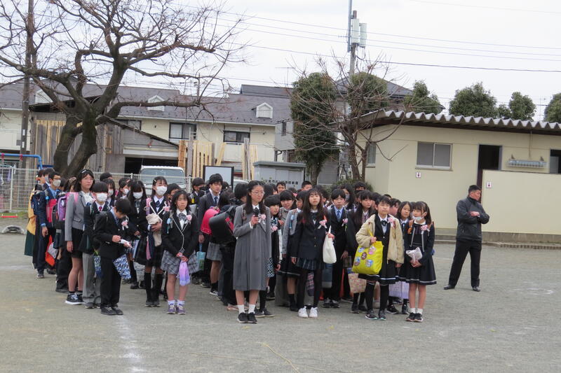 3月25日(月)修了式の日。今年度最後の登校の日は雨となってしまいましたが、子どもたちは元気に登校してくれました。