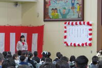 児童代表のことばは、児童会代表さんがしっかりとお話してくれました。先生からは、春休みの過ごし方についての話を聞きました。