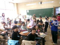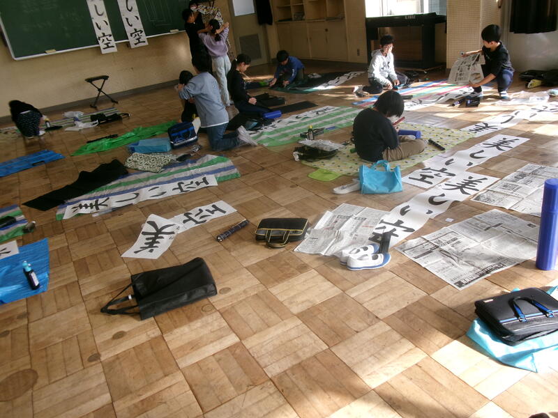 どの学年も書き初めの練習を頑張っています。4年生は「美しい空」。必死にお片付け中です。