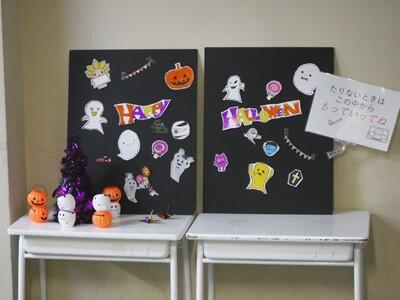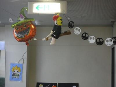 10月11日(月)校内を巡回し、調理室まえにハロウィンの装飾が大きくありましたので、紹介します。先々週あたりから飾られていました。