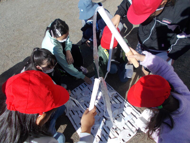 6年生からは、下級生を気遣うやさしい言葉、雰囲気を盛り上げる声がたくさん聞こえてきました。「6年生がすごくやさしい!」と私に話しかけてくる子もいました。6年生の行動が光っていました!!晴天のもと、楽しい集会になりました。