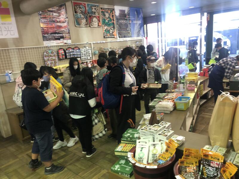 東照宮見学を終え、お土産を買っています。予定より少し遅い14:40頃に日光を出発できそうです。