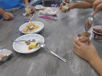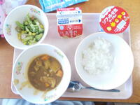 9月5日(火)のメニューは、カレーライス、ブロッコリーソテー、ヨーグルトで、いろいろな色のお茶碗に、初めてごはんをよそう日となりました。低学年は、少し大変そうながらも頑張ってよそっていました。