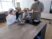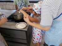 家庭科室でお団子を作るときには、水が沸騰していく様子を興味深く見つめながら、一人ひとりうれしそうにお団子を鍋に入れていきました。